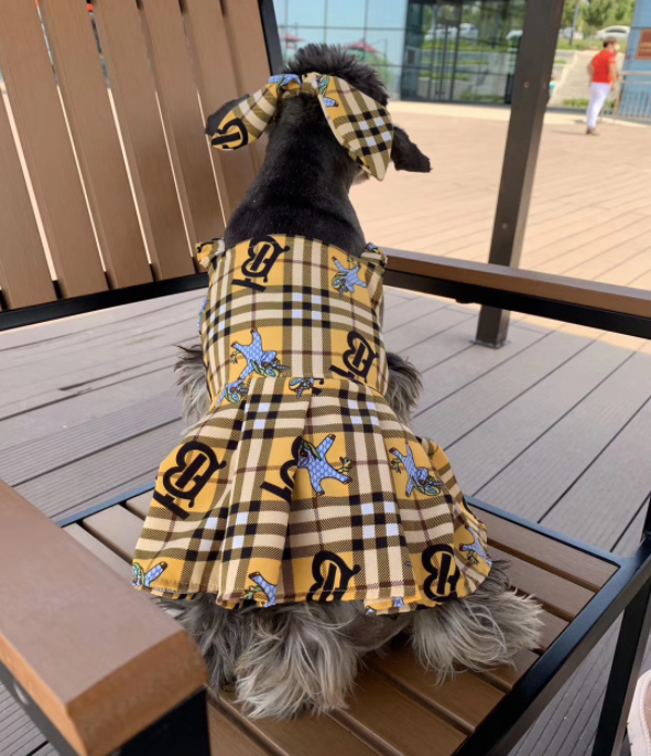 When the weather is warm, there’s no better outfit for your dog than our designer inspired Furberry BT dress with headband. Official colors are yellow and red. It is lightweight and breathable, so your dog will enjoy wearing it. Whether you’re going to the park or just hanging around the house, you will love the way this dress looks on your dog. The bright colors will attract new friends, and your dog will be the star of the show.